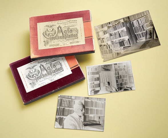 Möglicherweise wurde bei der Aufnahme auch Blitzlichtpulver mit Magnesium eingesetzt, eine Technik, die wir heute nur noch aus historischen Filmen kennen. Die schweren Platten waren zwar unhandlich, aber ausserordentlich haltbar. Hielt man sie gegen das Licht, war das Bild bereits sichtbar, ohne Abzug auf Papier. Dank ihrer geringen Filmempfindlichkeit geben sie feinste Details wieder – für Fränkel ein unschätzbarer Vorteil. So konnte er zentrale Quellen sichern, denn diese Dokumente mussten oftmals entweder zurückgegeben werden, handelte es sich um Besitz aus Archiven oder Privatsammlungen. Oder ihr Besitz war für Fränkel bedroht, da ihm wiederholt der Zugang versperrt war.