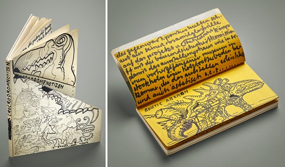 Die Notizen und Tagebucheinträge zum «Crocrodrome» sind kurze Passagen jener reichhaltigen Künstler(tage)bücher, die Bernhard Luginbühl zeitlebens geschaffen hat. Die einzigartigen Bände sind für die Erforschung seines eigenen Œuvres sowie desjenigen befreundeter Kunstschaffender hochrelevant. Seit 2019 werden sie in der Graphischen Sammlung der NB aufbewahrt.