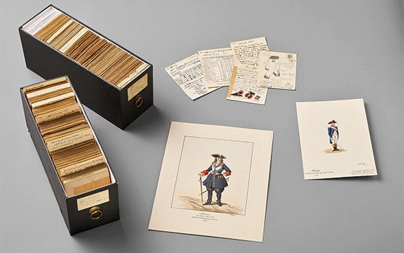 Im Archiv Adolf Pochon zeigen dessen Zeichnungen den Wandel der militärhistorischen Uniformen vom Ancien Régime bis hin zu den Garnituren nach der Gründung des Schweizer Bundesstaates.