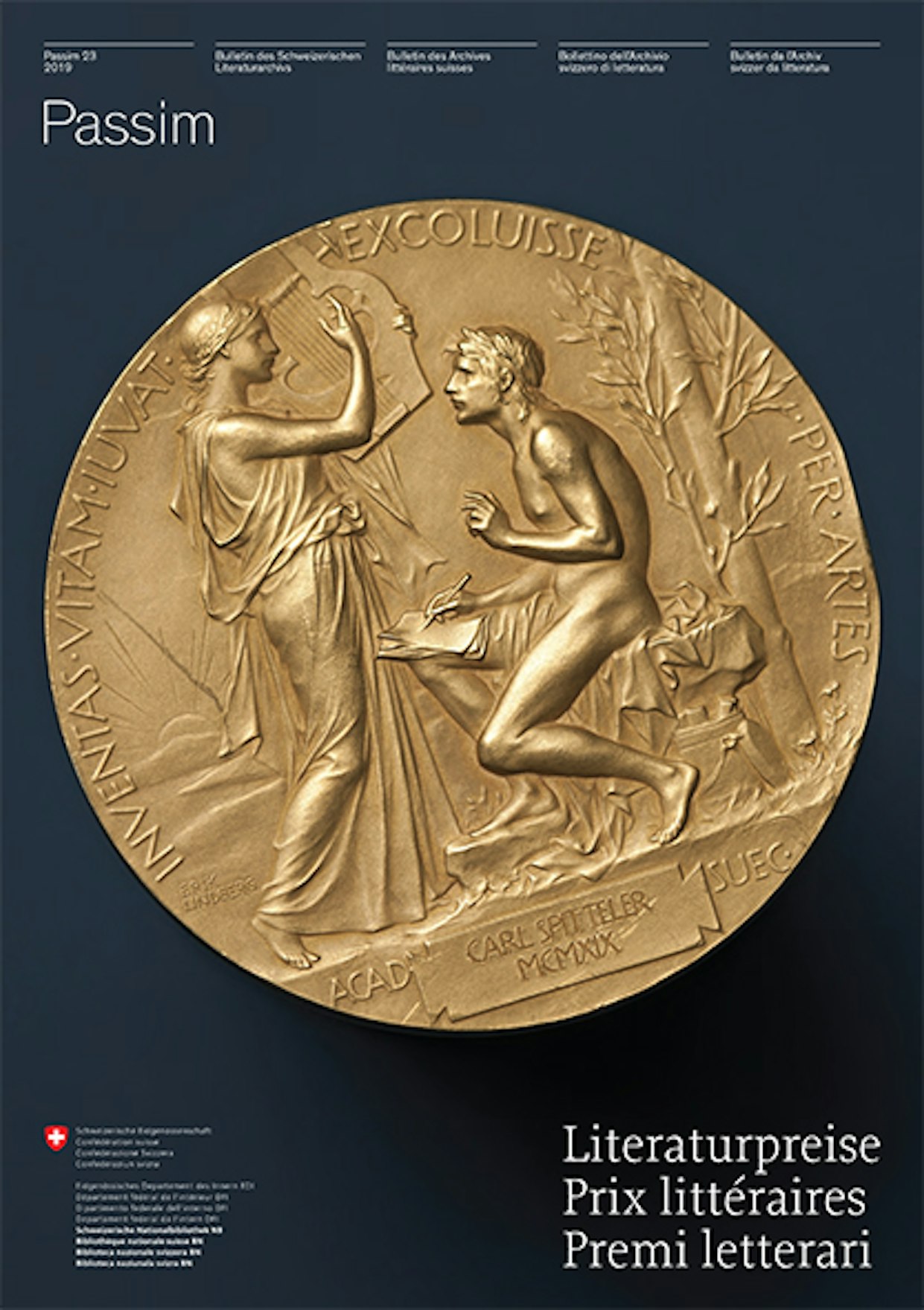 Aus Anlass des 100jährigen Jubiläums der Verleihung des Nobelpreises für Literatur an Carl Spitteler widmet sich die aktuelle Ausgabe von Passim den Praktiken und Problematiken des Prämierens. An die Stelle von Mäzenen, die ihre Hofdichter fördern und mit Lorbeer krönen, ist heute ein komplexer Apparat der Kulturförderung getreten. Der Übersichtsbeitrag von Anna Auguscik zeigt in einem kulturhistorischen Abriss diese Entwicklung auf. Dominik Müller erlaubt einen Einblick in die Arbeit einer Preisjury und nennt Kriterien, nach denen literarische Preise vergeben werden, was immer auch umstritten ist, wie der Beitrag von Felix Philipp Ingold zeigt. Ingold berührt dabei u.a. einen Aspekt, den schon Carl Spitteler in seiner Funktion als Juror monierte, dass die Grenze zwischen verdienter Auszeichnung und verdeckter Subvention oft verwischt wird (siehe dazu den Beitrag von Louanne Burkhardt). Eine Vorstellung über die – zuweilen auch kuriose – Vielfalt an literarischen Auszeichnungen vermittelt die Galerie mit Dokumenten aus dem Bestand des Schweizerischen Literaturarchivs.
