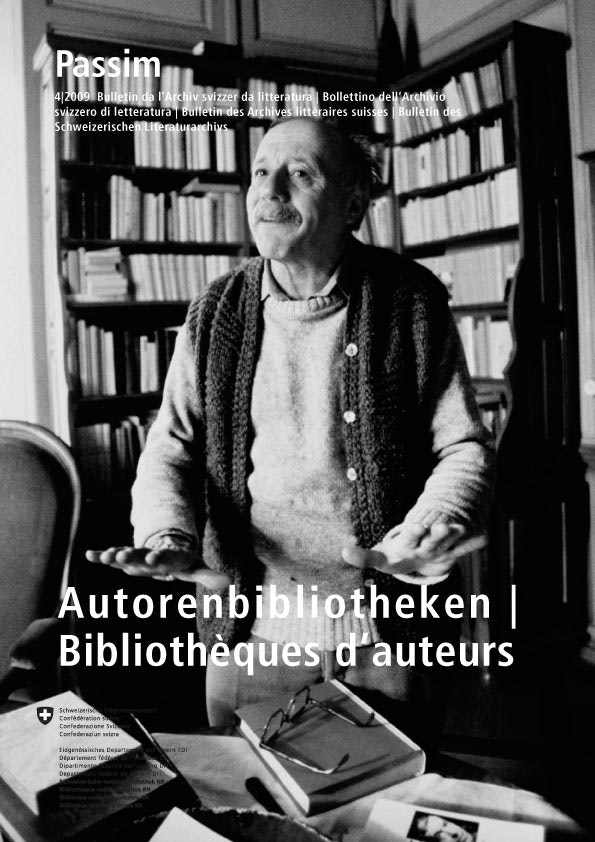 Soeben ist die Nummer 4 von Passim, dem Bulletin des Schweizerischen Literaturarchivs, erschienen. Schwerpunktthema sind die Autorenbibliotheken. Weitere Artikel geben umfassenden Einblick in die Arbeiten des SLA in den letzten Monaten. Eine Auswahlbibliographie zur Schweizerliteratur aus allen vier Landessprachen ergänzt die Textbeiträge.