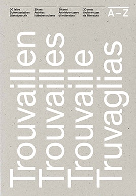 «Trouvaillen. Eine Auslage von literarischen Objekten – Trouvailles. Une vitrine d’objets littéraires – Trouvaille. Una vetrina di oggetti letterari – Truvaglias. Ina vaidrina dad objects litterars», Schweizerische Nationalbibliothek / Schweizerisches Literaturarchiv, Bern, 2021. ISBN 3-9522372-2-1