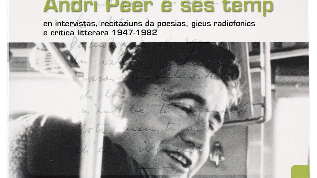 Andri Peer e ses temp en documents audiovisuals istorics. Intervistas, recitaziuns da poesias, gieus radiofonics e critica litterara (1947-1982) or dals archivs da Radio e Televisiun Rumantscha, ed. Annetta Ganzoni, Berna, BN/ ASL, 2008