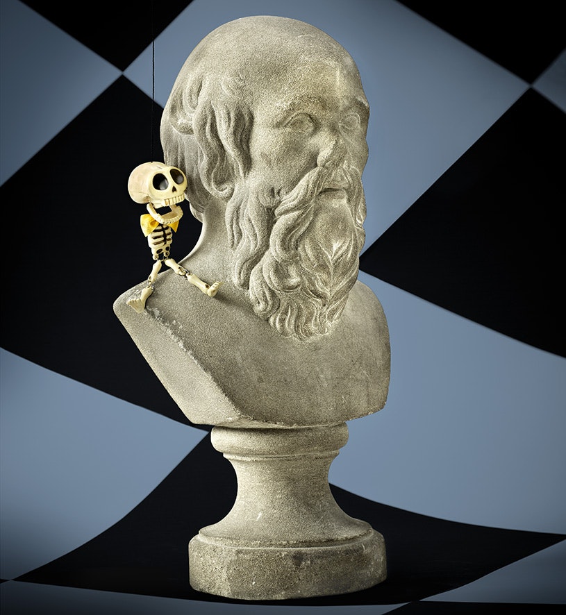 Ce buste de Socrate reposait il y a peu dans un petit appartement de la rue Oudinot à Paris, sur la moquette rose passé de Roland Jaccard. La présence du philosophe grec chez l'auteur de Cioran et compagnie (2004) a de quoi surprendre. Et pour cause : Jaccard s'est plutôt choisi comme maîtres Schopenhauer et Benjamin Constant, et cite de préférence Marc Aurèle et Sénèque. L'origine de la statue atteste d'ailleurs qu'il ne s'agit pas d'un modèle philosophique délibéré : ce buste lui fut offert par son père pour ses vingt ans. On cherchera donc en vain trace de la philosophie de Socrate sous la plume de Jaccard : le nihilisme de l'écrivain ne fait guère bon ménage avec l'éthique du philosophe. Le père de Roland Jaccard lui-même se disait « plutôt spinoziste, tendance Alain » et « préférait les anecdotes aux systèmes et les aphorismes aux argumentations ». Les préoccupations socratiques paraissent donc bien étrangères aux Jaccard père et fils...
