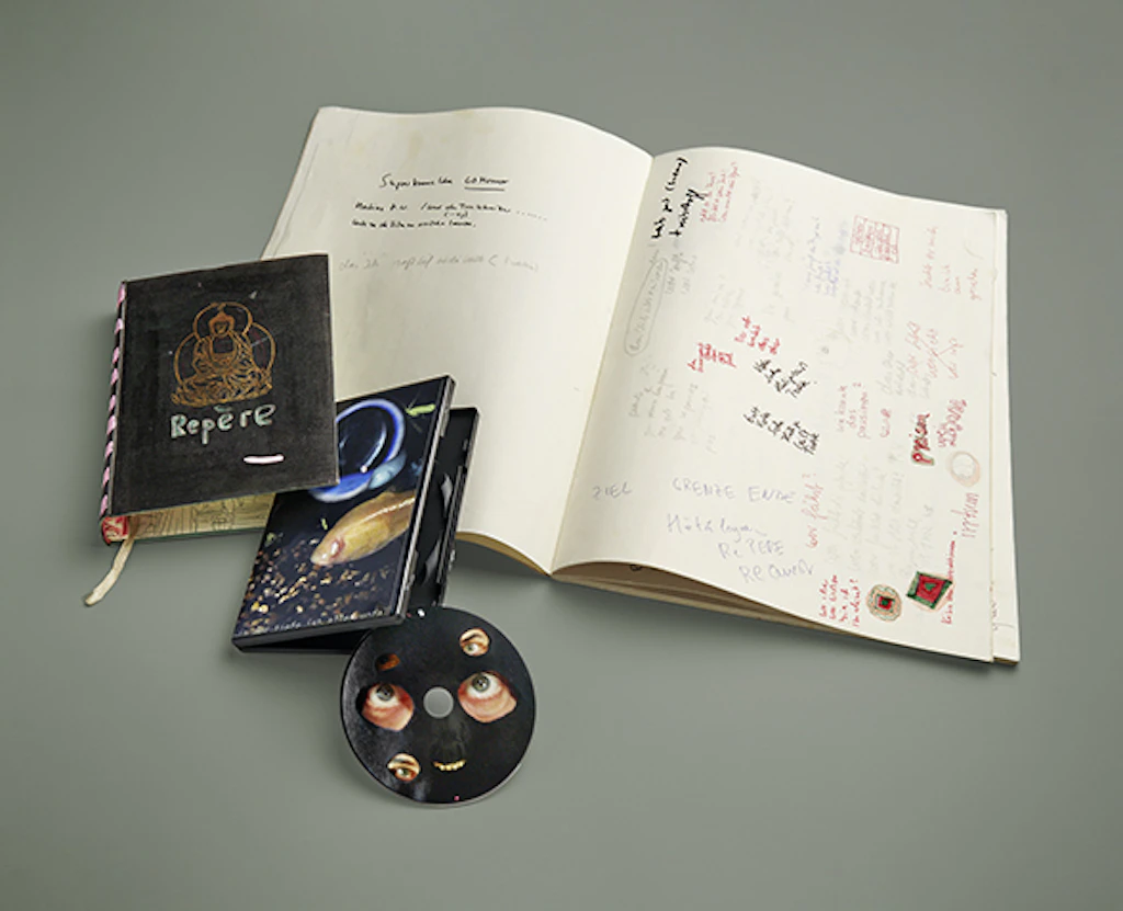 Unikales «Repère-Originalbuch» mit Einband, DVD-Hülle und DVD (2009) sowie das Regiebuch (Foto: NB, Simon Schmid)