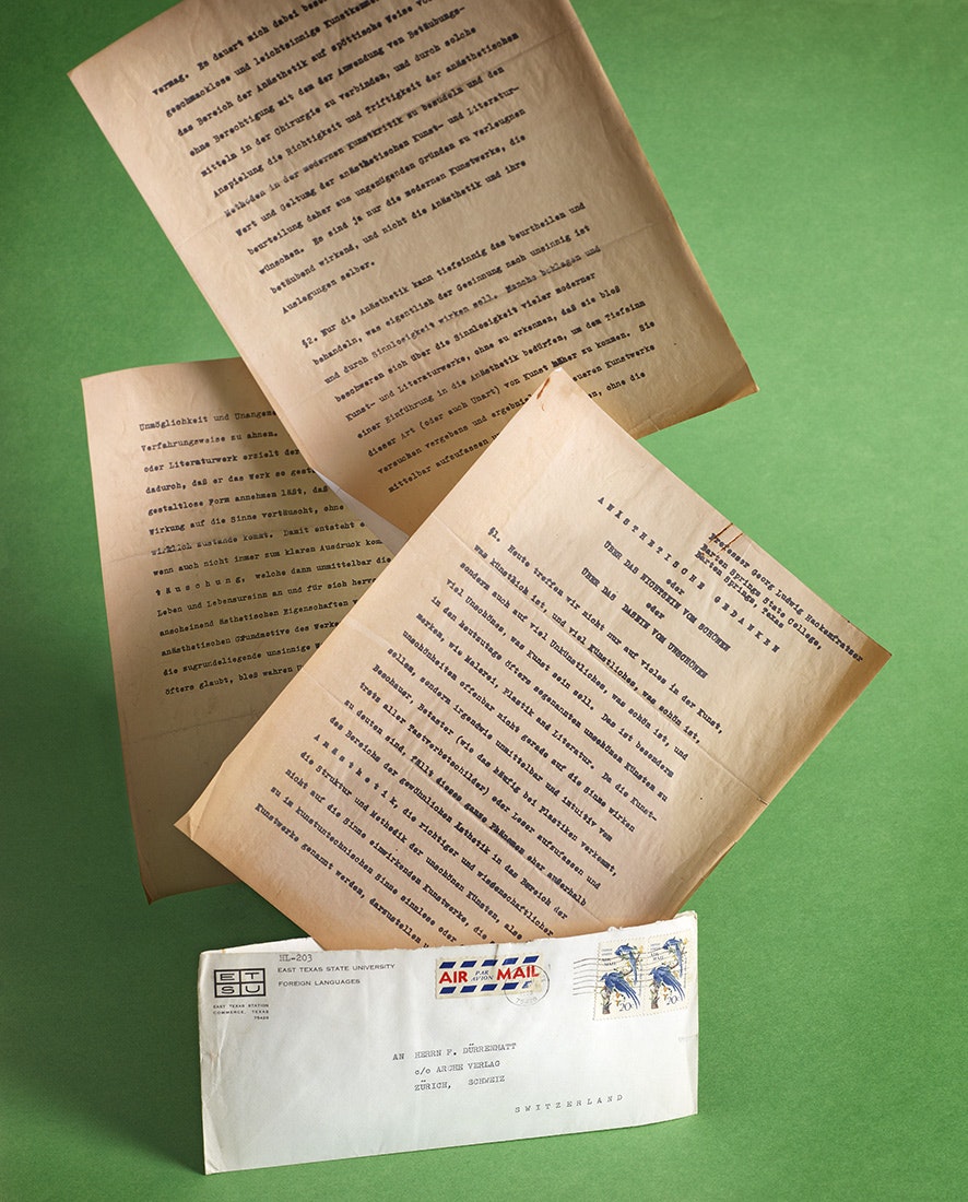 Während dem Studium jedenfalls nahm Harvey zeitweilig die (Schreib-)Identität von Georg Ludwig Hackenfratzer an, in dessen Namen einige parodistische Texte entstanden. Und das nicht grundlos: «Um die Germanistik ‹ernst› zu nehmen, mußte ich doch eine gewisse Ironie ihr gegenüber erlangen.» Das steht in einem Brief aus dem Jahr 1969, der an niemand Geringeren als an den behandelten Autor Friedrich Dürrenmatt selbst gerichtet ist. Im Brief werden neben den «Anästhetischen Gedanken» noch weitere Nonsense-Texte erwähnt wie etwa die Schrift «Über den frühexzessivistischen Dichter J. G. van Staddraheimelkeslery» oder «Das reine Nachschlagewerk». Nichts davon ist heute überliefert, denn alle diese ‹Werke› fielen einem grausamen biblioklastischen Akt zum Opfer. Und das kam so: Während dem Studium in Austin/Texas wurde mit Hilfe einiger Kommilitonen, die schon länger am Kult um Hackenfratzer partizipierten, ein selbstgebasteltes «fake book» von Hackenfratzers Sämtlichen Werken (hrsg. vom GalgenVerlag aus Ebnet an der Dreisam) in die Universitätsbibliothek geschmuggelt, akribisch abgestempelt, mit falschen Ausleihdaten versehen, sorgfältig im Magazin unter einer erfundenen Signatur verstaut und dazu heimlich eine Katalogkarte ausgefüllt. Fortan weilte es unbemerkt unter dem offiziellen Buchbestand. Kurz: Wir haben es hier mit einem Meisterstreich unter den «library hoaxes» in der Bibliotheksgeschichte zu tun. Die Fälschung war so perfekt, dass die Titel zeitweilig sogar im National Union Catalog (NUC) auftauchte, was der ganzen Aktion schliesslich zum Verhängnis wurde. Als das Buch nämlich über den interbibliothekarischen Leihverkehr angefordert wurde, entdeckte ein Bibliotheksmitarbeiter die Fälschung - und der ganze Schwindel flog auf. Ganz zum Ärger des technischen Leiters der Universität, der das Buch auch kurzerhand durch den Shredder drehte. Aus, vorbei. Hackenfratzer war Geschichte.