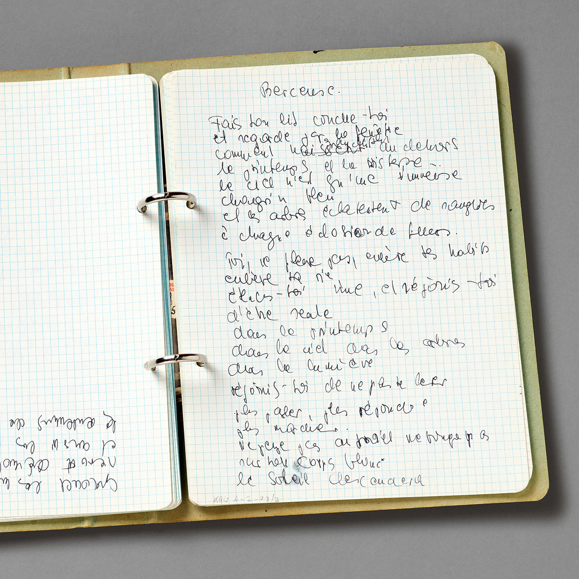 Cette Berceuse au lyrisme cruel porte la double mémoire d'une œuvre hongroise perdue et de sa reconquête transmuée en français. Si la jeune Agota Kristof - elle a 21 ans lors de sa fuite - a dû abandonner ses premiers manuscrits en Hongrie, elle continua à composer des poèmes hongrois lors de ses premières années d'exil, avant que peu à peu le français, « vampire » de sa langue maternelle, ne devienne sa langue d'écriture. Elle dit avoir retranscrit de mémoire certains de ses poèmes hongrois de jeunesse, avant de les traduire elle-même en français, des années plus tard. Cette Berceuse en fait partie et son manuscrit se trouve dans une liasse de textes mêlant pièces de théâtre, amorces de nouvelles et poèmes remontant, pour ceux qui sont datés, au tout début des années 80.