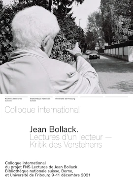 Sous le titre bifocal « Jean Bollack. Lectures d'un lecteur – Kritik des Verstehens », cette rencontre invite tout d’abord à reprendre les lectures que Jean Bollack a proposées tout au long de sa carrière (qu’il s’agisse de textes publiés, de manuscrits inédits ou de versions préparatoires) pour les (re)lire de manière « critique » – et ce, dans tous les sens du terme : qu’il s’agisse de ressaisir la cohérence de sa pratique de lecture, d’interroger ses conditions de possibilité, ou encore d’évaluer les résultats auxquels Bollack est parvenu.