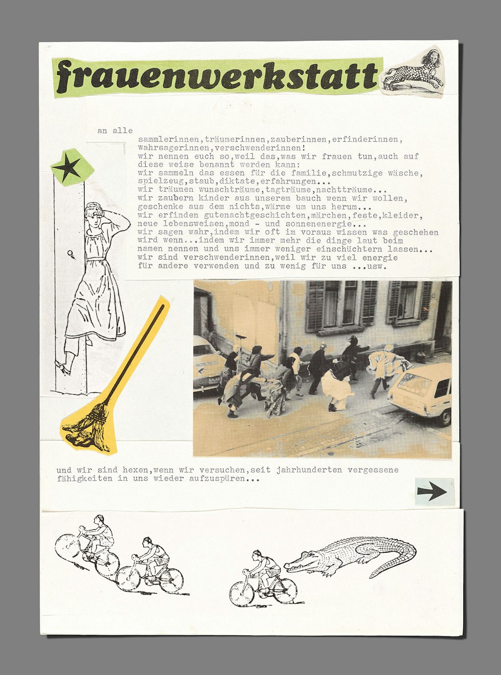 À partir de 1977, Doris Stauffer met au programme de l’école F+F des cours de sorcellerie, réservés exclusivement aux femmes. Ces cours privilégient le partage d’expériences, le développement de la confiance en soi et l’ouverture à la créativité. On y travaille la photographie, le cinéma, la danse, l’expression orale. Les cours dépassent bientôt le cadre de l’école F+F. À partir de 1978, Doris Stauffer loue des locaux dans une usine où elle poursuit les cours de sorcellerie dans son « atelier pour femmes », d’où sortira l’action des maillots de bain.