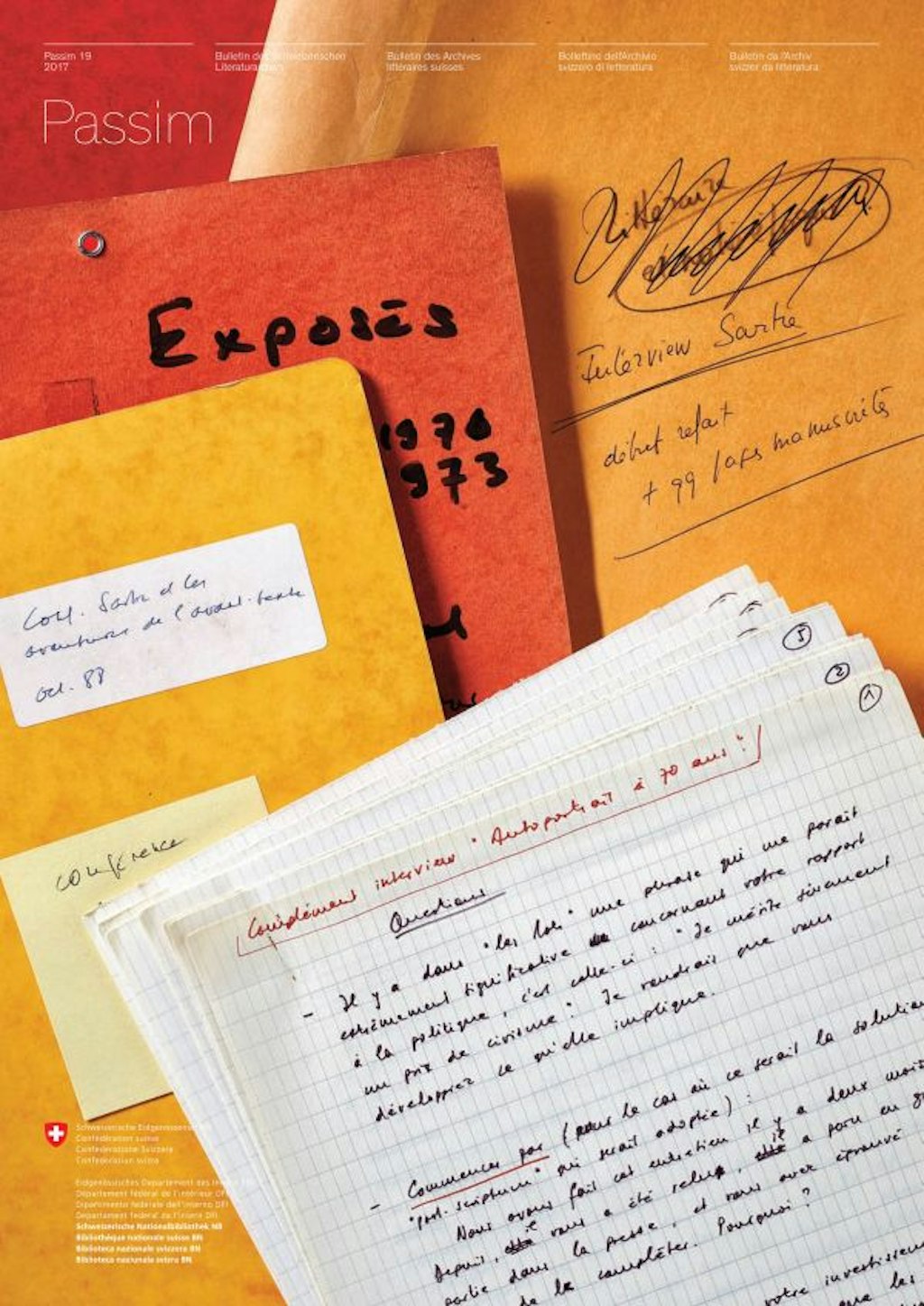 Le 18 novembre 2016, quelques écrivains ayant déposé leurs archives aux ALS et plusieurs jeunes auteurs ont aimablement accepté de se joindre à nous pour l’ultime manifestation célébrant les 25 ans des Archives littéraires suisses, « Jour et nuit aux Archives ». Durant la soirée, neuf écrivains de la nouvelle génération sont montés sur scène pour faire entendre leur voix et partager leurs mots. Si la poésie fut largement à l’honneur avec Laurent Cennamo, Thilo Krause ou Yari Bernasconi, le public a aussi pu découvrir les performances (spoken word) d’Ariane von Graffenried et de Lisa Christ avant d’entendre Patric Marino accompagné de musique électronique. Une soirée plurilingue qui a illustré la vitalité et la diversité de la création littéraire contemporaine. Un peu plus tôt dans la journée, Michel Contat, Alberto Nessi, Klara Obermüller, Reto Hänny et Daniel de Roulet se sont prêtés au jeu des questions posées par les collaborateurs des ALS en charge de leurs papiers personnels. Les discussions ont notamment porté sur leur rapport aux archives – aux leurs comme à celles de leurs confrères –, et sur leurs attentes vis-à-vis de notre institution. La diversité des parcours et des situations personnelles a fait la richesse de ces entretiens : « praticien » des archives au sein de l’Équipe Sartre de l’ITEM et rompu à l’exercice de l’entretien littéraire, Michel Contat se retrouve cette fois-ci de l’autre côté du micro ; Klara Obermüller, qui fut la compagne et l’éditrice de Walter Matthias Diggelmann, se penche sur les papiers de l’écrivain décédé en 1979 ; quant à Daniel de Roulet, ex-informaticien devenu écrivain, il entretient un rapport très pragmatique avec ses archives et fait preuve de scepticisme vis-à-vis de la conservation des documents numériques. Disponibles intégralement sur le site de la Phonothèque nationale suisse, les neuf lectures et les cinq entretiens – sous la forme d’une sélection d’extraits retranscrits par les ALS – font l’objet du dossier de ce nouveau numéro de Passim.