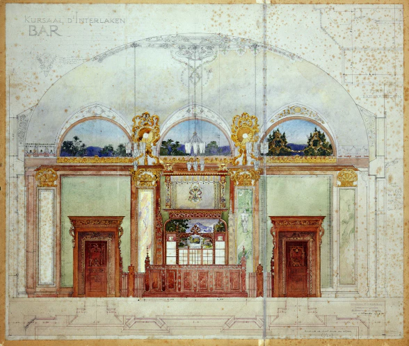 Ausführungsplan «Bar américain» im Kursaal Interlaken, Architekt Paul Bouvier, 1908